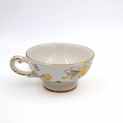 Questa tazza da thè è una piccola opera d'arte. Il decoro Garofano realizzato a mano e dipinto in oro zecchino 24 carati puro al 999%, si fonde con lo smalto caldo e avvolgente dei toni dell'Avorio.
