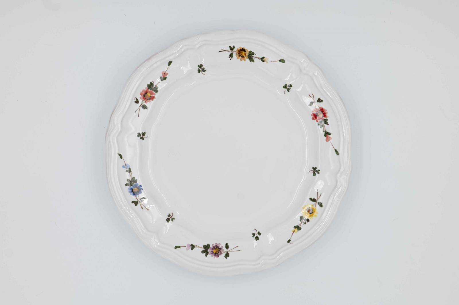 Piatto da dessert o frutta, ideale anche per piccole porzioni dolci o salate. Il motivo floreale, fresco e delicato, aggiunge poesia a ogni momento.